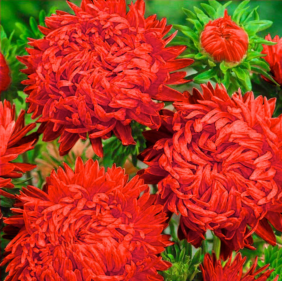 Астра пионовидная Дюшес красная
