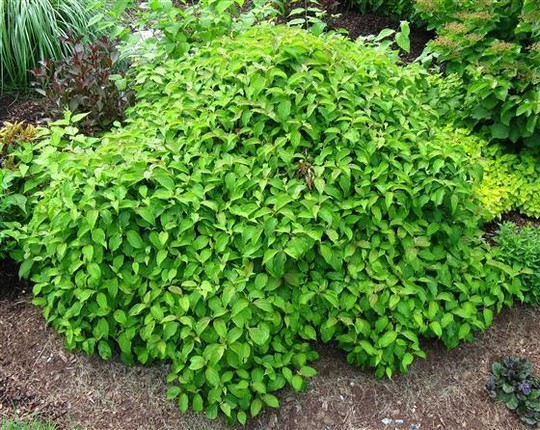 Саженцы дерена Келси (Kelseyi) дают раскидистые кустарники, компактного размера (до метра), отлично вписывающиеся в самые небольшие участки. Ветки растения имеют красные верхушки, листья яркого зеленого окраса, долго неопадающие, осенью желтеют и краснеют. Цветение зеленоватыми цветочками в кисточковых соцветиях с начала лета и до самого ноября. Дерен Келси дает беленькие плоды.