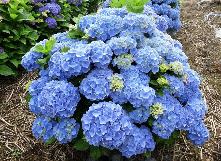 • оттенок цветов зависит от почвы. На кислой – от светло-голубого до насыщенно-синего, а при нейтральной кислотности цветы приобретают розовые тона;