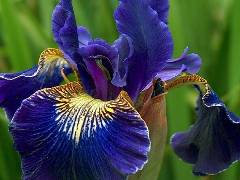 • Окраска цветка : Огромный фиолетово-синий цветок с ярким жёлтым кантом по краю фолов.