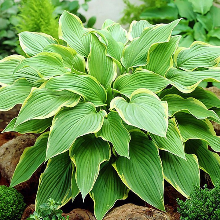 Рассада хосты гибридной Еллоу Ривер (Yellow River) формируется в роскошный куст, который станет украшением любого сада. Сорт отличается: