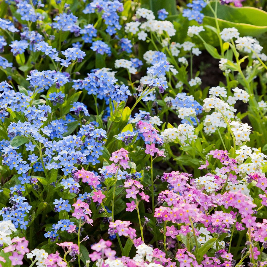 Семена незабудки (смесь) станут достойным вариантом для наполнения цветников, балконных ящиков и подвесных горшков. Посадите смесь и выращивайте нежные цветочки белого, розового и голубого оттенков. Высота взрослых кустов не превышает 30 см. При плотной посадке растения образуют плотный ковер, закрывающий землю.