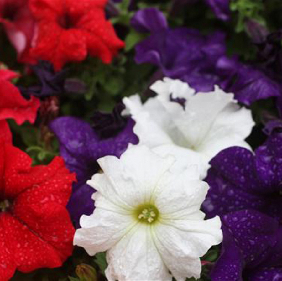 Окраска цветка : Красная,синяя,белая