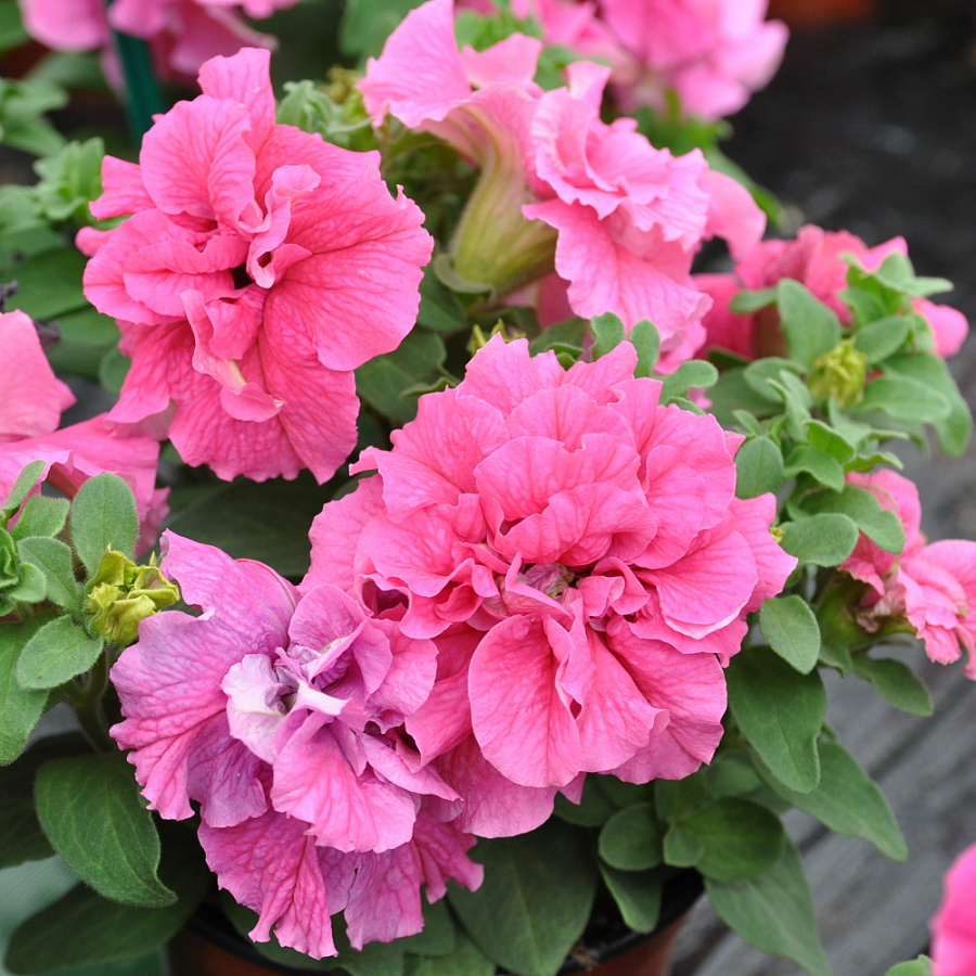 Петуния махровая Double Cascade Soft Pink - это изысканное растение с нежными розовыми цветками, которые напоминают пышные шелковые платья. Ее стебли прочные и устойчивые, достигают высоты до 35 см, а диаметр цветка может достигать 10 см. Листья петунии мелкие, зеленые, создают прекрасный контраст с яркими цветами.